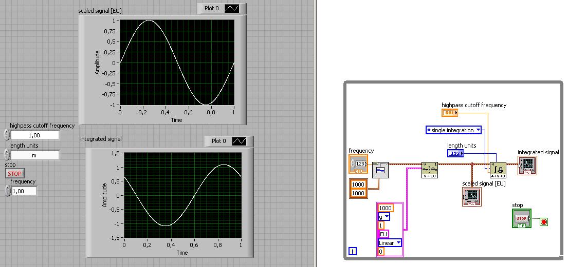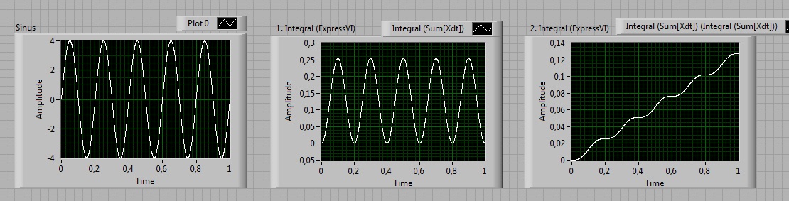 Ich habe mir einfach mal zum Testen der Integration in LabVIEW einen Sinus erzeugt und diesen zwei Mal integriert. Dann müsste ich ja eigentlich wieder einen Sinus herausbekommen. Das ist aber nicht so (siehe Bild im Anhang).