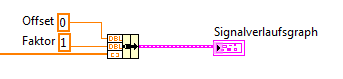 Über den Signalverlaufsgraphen lasse ich mir eingelesene Werte anzeigen. Mit einem Eigenschaftsknoten lege ich das Minimum und Maximum des Graphen fest.