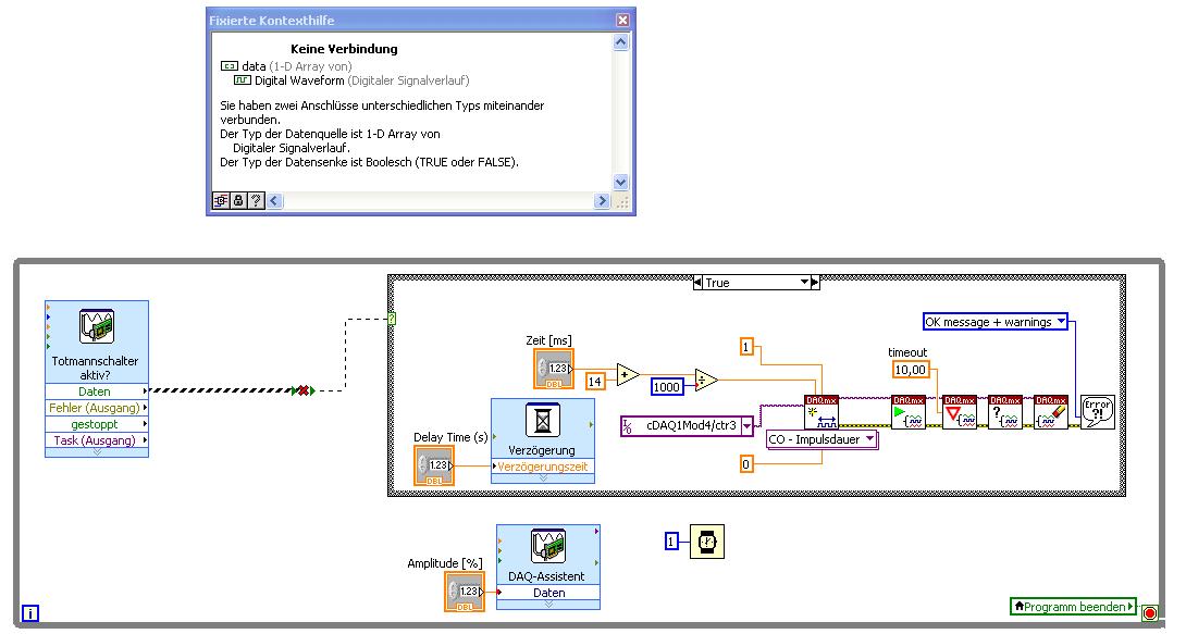 ich messe mit dem NI9421 (Digitales Eingangsmodul). Nach dem DAQ-Assistenten wird mir ein digitales 1-D Array ausgegeben welches eine CASE-Struktur steuern soll.