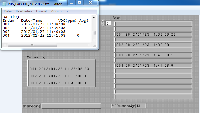 Aber gibt es anderes Problem und zwar, nach dem als Programm gestartet wird, werden alle Daten aus der txt-Datei, die man auf Wunsch auswählen kann, ausgelesen und dargestellt. Aber wenn man neue Messwerte aus einer anderen txt-Datei auslesen möchte, das funktioniert nicht mehr richtig! Die neue Daten werden zusammen mit den alten Messdaten, die vorher ausgelesen wurde, im String-Anzeigefenster dargestellt, obwohl ich den Wert im Programm auf Null setzte. Worum passiert das? Ich möchte jedes mal die aktuelle Daten aus txt-Datei, die zum Auslesen ausgewählt wird, haben, um weiter die Messwerte zu verarbeiten. Wie kann man das realisieren?