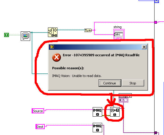 Das habe ich gemacht, aber imaq red file vi gibt den Fehler aus, unable to read data, wenn ich den auf true habe