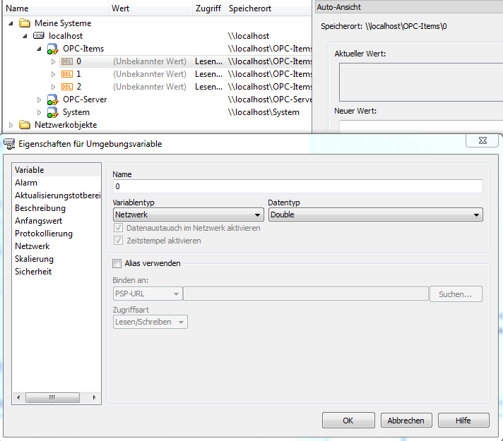 DSC-Modul: shared variables -> OPC verbinden