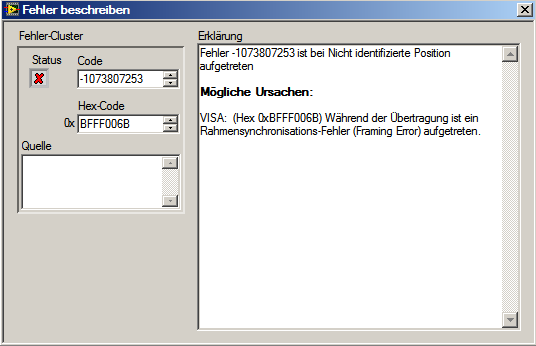Wenn man aber - was zunächst mal das Naheliegendste ist - für die Fehlercode-Erklärung statt im Internet zu suchen LabVIEW selbst bemüht (Menüleiste/Hilfe/Fehler beschreiben), dann ist das Minuszeichen schon notwendig, sonst kommt nichts.