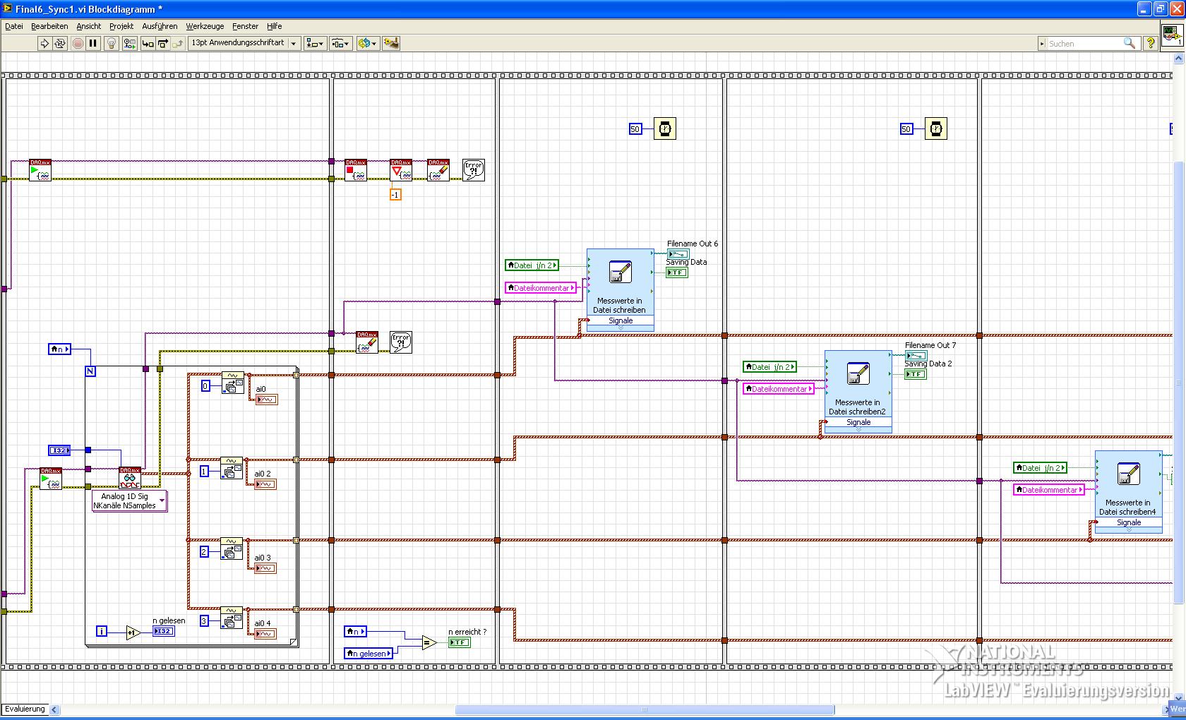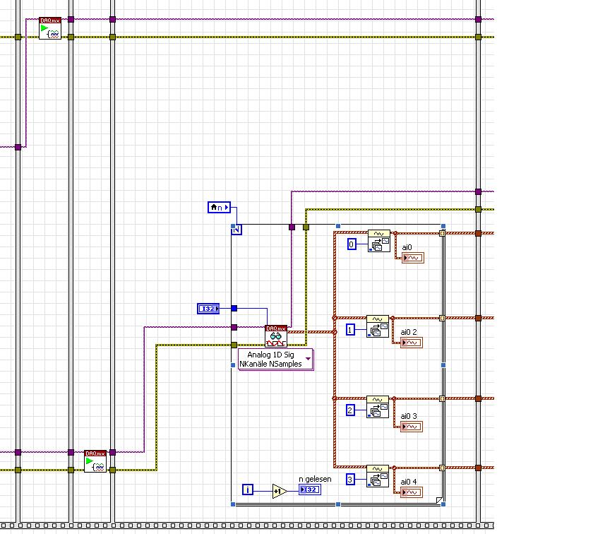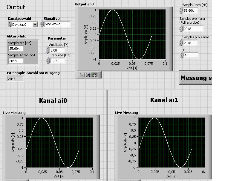 Also ich möchte mit dem Programm die Hardware NI usb 4431 wie folgt ansteuern: Ausgabe eines (Sinus)Signals über den AO und Erfassung der Signale der Eingänge Ai0 bis Ai3.