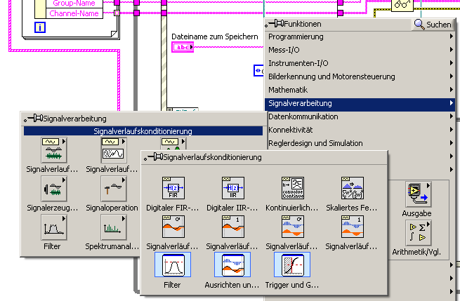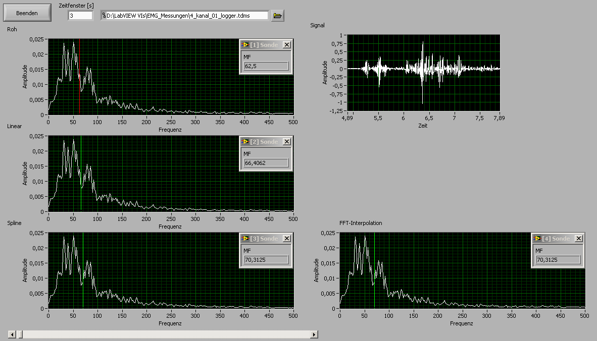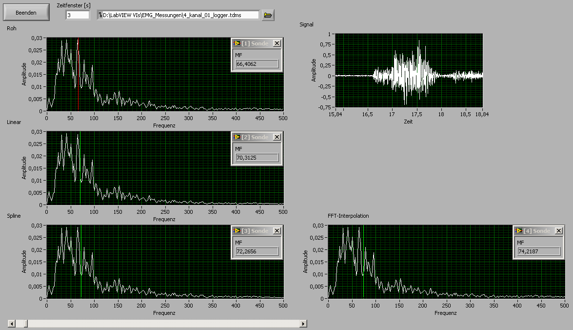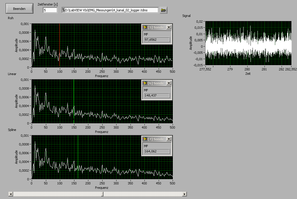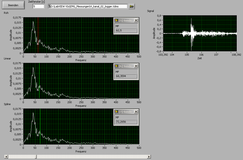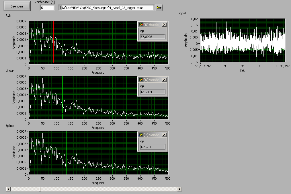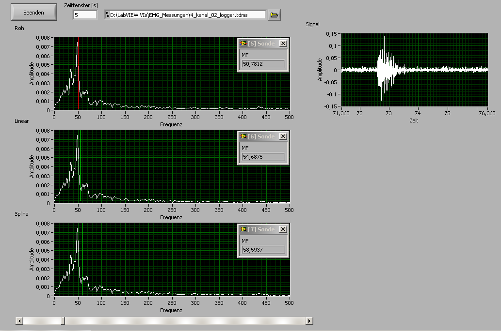 Die EMG-Daten akquirieren wir mit dem Produkt eines Drittherstellers. - Zur Auswertung / Nachbearbeitung der aufgenommenen EMG-Daten programmiere ich LabVIEW-Tools.