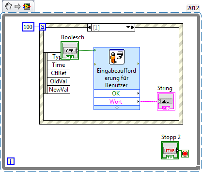 nur in dem Schleifendurchlauf, bei dem der Schalter betätigt wird, im String erscheint. Anschließend ist der String wieder