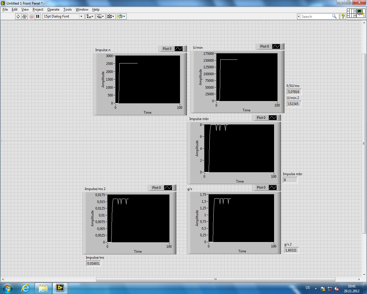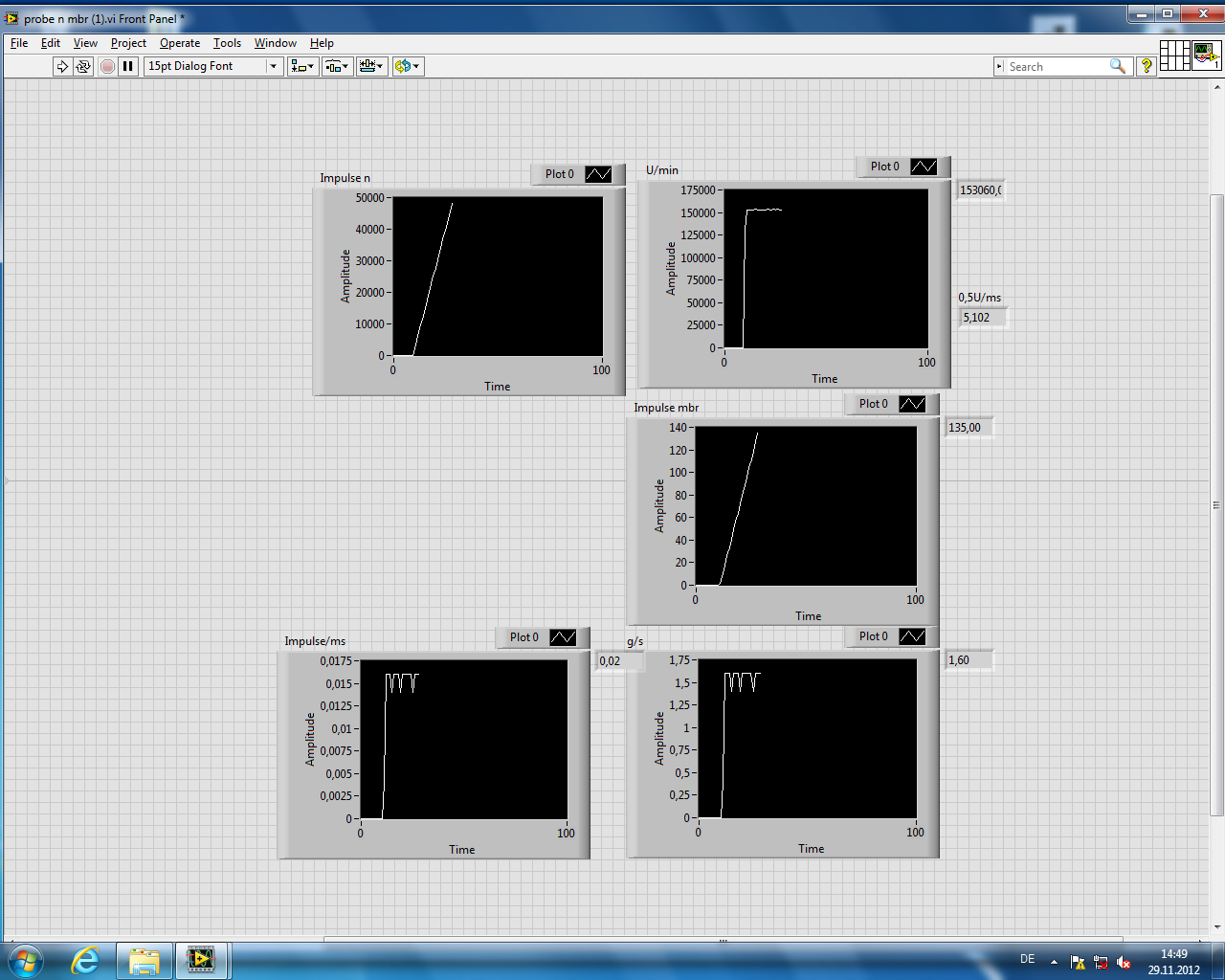 Wenn ich das VI. laufen lasse, und die Turbine rotiert, wird die Drehzahl richtig aufgenommen. Wenn ich Brennstoff pumpe wird dieser angezeigt, aber gleichzeitig wird eine sehr hohe Drehzahl angezeigt.