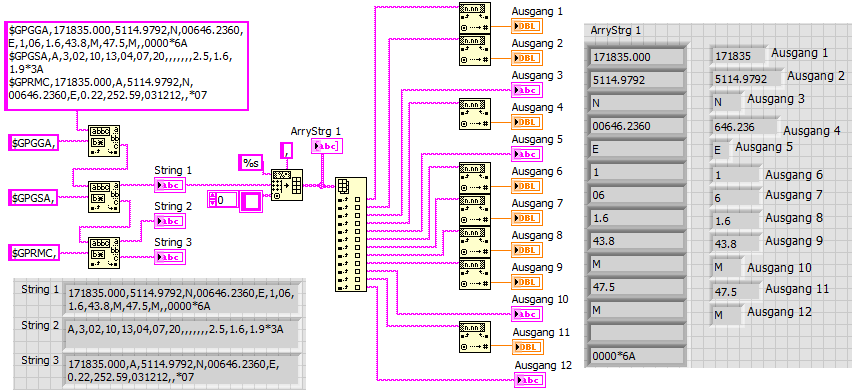 Zerpflück Dir das Signal doch mit "Spreadsheet String to Array" ( mit einem Komma (,) als Trenner). Ich mache das immer so, weil ich erstens mit den Formatangaben nix anfange(n will) und zweitens genau sehe, was ich da überhaupt programmiert habe.