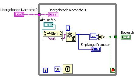 3. => Das SubVI wird aufgerufen, findet AktBefehl=11 vom letzten Mal und beendet sich. Erst jetzt startet die FOR-Schleife ...