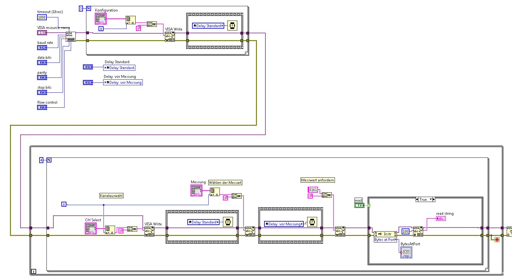 Ich Messe mit dem durch die VI angesteuerten Messgerät nacheinander einen Widerstand (R1), eine Temperatur (T1), eine weitere Temperatur (T2) und einen weiteren Widerstand (R2). Anschließend wieder von vorne. In dieser Reihenfolge, so lange, bis es dem User reicht und er abbricht.