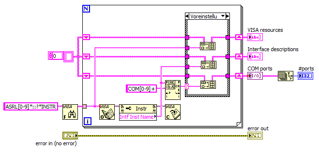 Allerdings würde ich dem User nie eine VISA-Resource zur Auswahl geben, sondern ihn immer aus den vorhandenen COM-Ports (s.o.) per Ring oder Listbox wählen lassen...