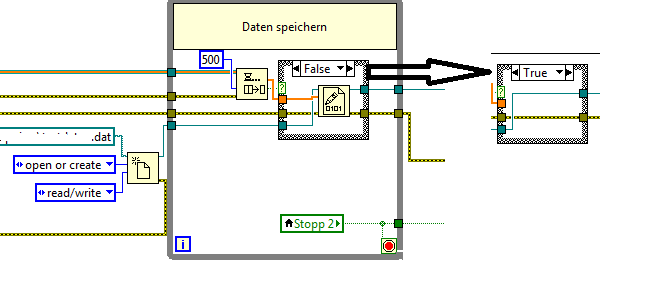 D.h. Hasenfuß könnte doch die Funktion Queue-Status lesen durch die Funktion Queue-Element auslesen ersetzen und seine Case-Struktur vom Flag TO überschritten abhängig machen. Dann könnte er in dem Case seine Datenspeicherung machen und sollte dort dann auch nicht die Datei jedesmal öffnen/schließen.