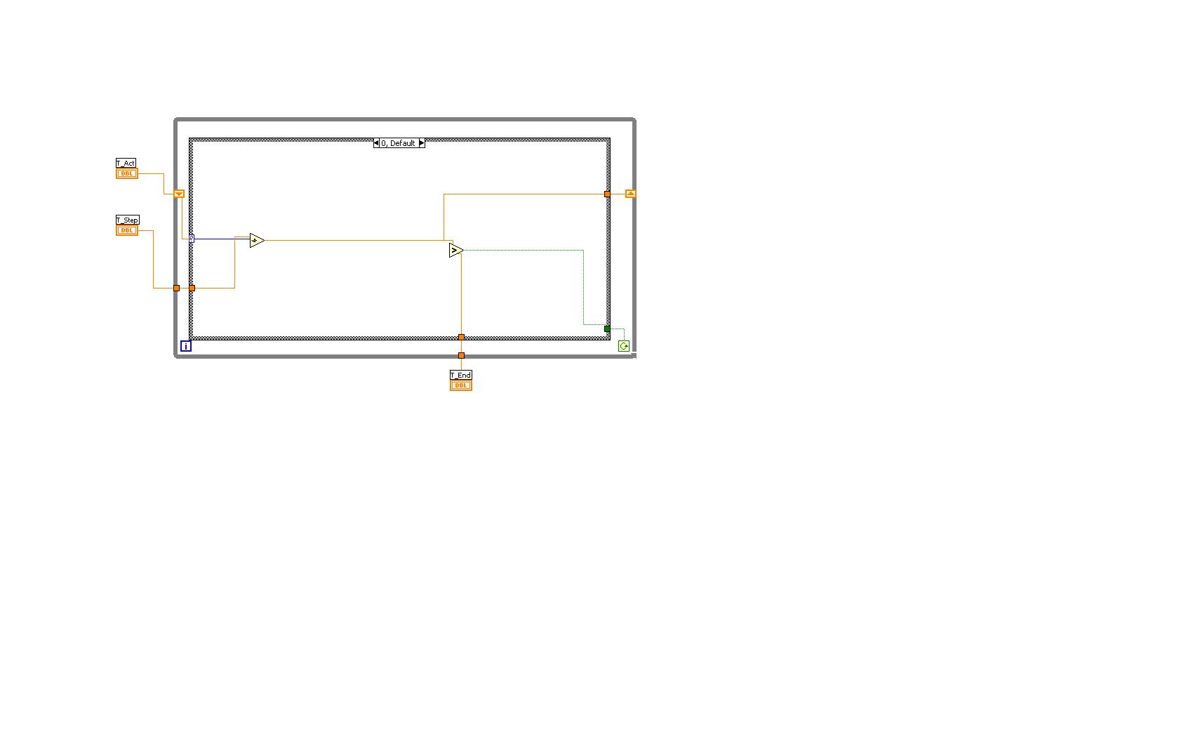 Etwas ausführlicher: Ich gebe eine Starttemperatur (z.B. 10°C), eine Endtemperatur (z.B. 40°C) und die Schrittweite (z.B. 3°C). Dann starte ich das VI. Nun soll die erste Messung des Schwellstroms bei T=10°C durchgeführt werden. Da ich ja komplett bis 40°C hochmessen möchte, soll nun abgefragt werden, ob die Temperatur bereits 40°C beträgt. Wenn dies nicht so ist, soll die Temperatur durch die Schrittweite von 3°C auf T=13°C erhöht werden und erneut der Schwellstrom gemessen werden. Dies soll dann eben so oft wiederholt werden, bis die Messung bei 40°C durchgeführt wurde und anschließen soll die Messung beendet werden. Daher kam der Ansatz mit der Abfrage, ob die aktuelle Temperatur noch geringer ist, alsdie Endtemperatur, denn irgendwoher muss das VI ja wissen, dass es weiterhin die Temperatur hochregeln soll.