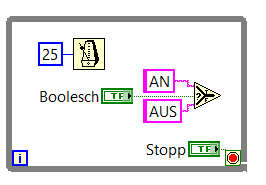 Also zu meinem Problem: Ich muss ebenfalls 8 Relais ansteuern, diese sind an einem µC Board angeschlossen und über Labview möchte ich eine grafische Oberfläche gestalten. Das sollte wie folgt funktionieren: |Button drücken|-->|Senden eines "char"(a,b,c...) über Labview|--> |µC Pin schalten|--> |Relais einschalten|-> |µC sendet ein anderes "char" zurück|-->|In Labview wird das Led oder Button Grün|.