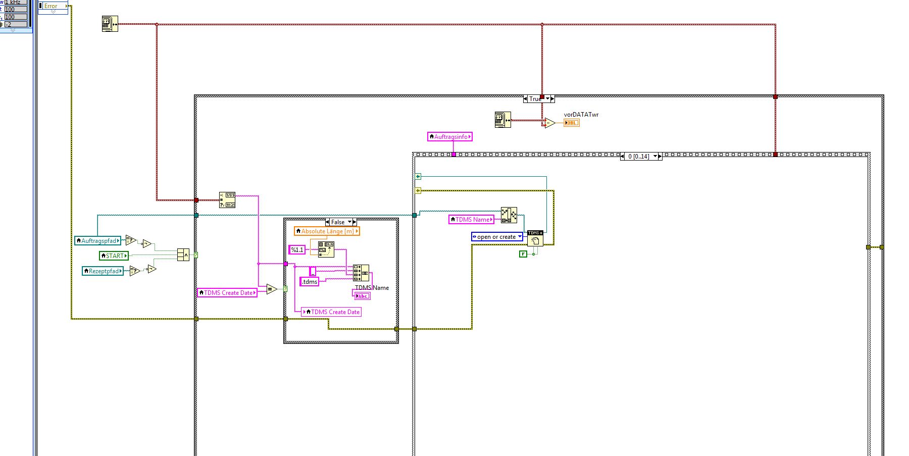 (Das Programm habe ich aus einem großen VI rauskopiert, leider wird alles irgendwo eingefügt von LabVIEW, es geht aber nur um das Blockdiagram und die TDMS dlls.)