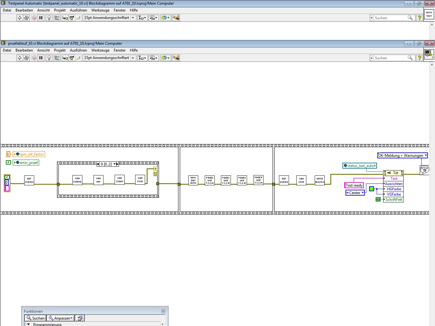 der Button Exit wird im Prüfablauf via globale Variabel abgefragt. Funktioniert auch aber ich kann das Haupt_VI nicht bedienen, sobald der Prüfablauf läuft (eingefroren).