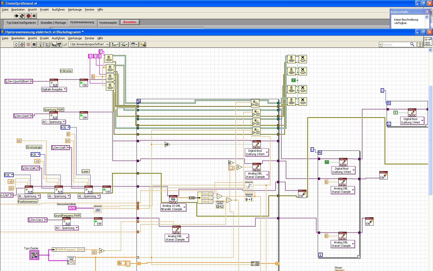 So wie es jetzt ist, rufe ich ein Sub VI zum abfahren des Motors und der Abfragung der Sensoren auf (Bild 3) und rufe über die Queue-Fkt. die Daten in Graphen (Bild 2)
