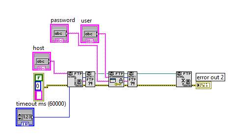 Versuche ich das ganze über FTP_PUT in LabView umzusetzen, so erhalte ich generell einen FehlerCode 56, welcher auf eine mögliche Zeitüberschreitung hinweißt. Woran kann das liegen? Auch mit den Beispielen von LabView(über Beispiele suchen) komme ich nicht wirklich weiter. Habe es auch schon mit OPEN FTP versucht, auch hier erhalte ich einen Fehlercode.
