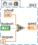 Folgende Situation: Ich habe ein VI zur Motorsteuerung. Dieses benötigt an einem Anschluss einen numerischen Wert für die Geschwindigkeit. Ich möchte gerne zwei verschiedene Werte an diesen Anschluss weiterleiten ("schnell" und "langsam"). Und zwar indem ich auf dem Frontpanel ein Boolesches Element zum Schalten platziere. Mit dem Schalten des Elements soll der jeweils andere Wert an die Motorsteuerung weitergegeben werden und sich erst wieder mit erneutem betätigen des Booleschen Elements ändern. Soweit so gut. Das eigentliche Problem ist folgendes: ich möchte dieses Boolesche Element auch mit einer Taste der Tastatur schalten können. Ich wollte ihm diese über den "ScanCode" aus dem Ereignisdatenknoten der Ereignisstruktur in der dieser Programmteil läuft zuweisen, aber ich kriege es beim besten Willen nicht zusammen, geschweige denn lauffähig.