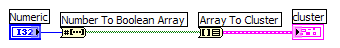 nun will ich eine Dezimalzahl in Binär wandeln und diese 010 dann als true false true im cluster aufzurufen