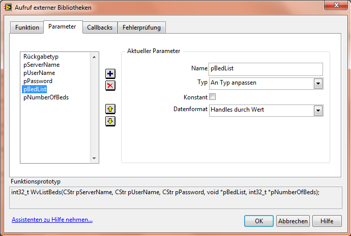 Zudem ist "An Datentyp anpassen" zwar korrekt, aber nicht "Handles durch Wert" sondern "Array Data Pointer" oder wie das auf Deutsch auch übersetzt wurde.