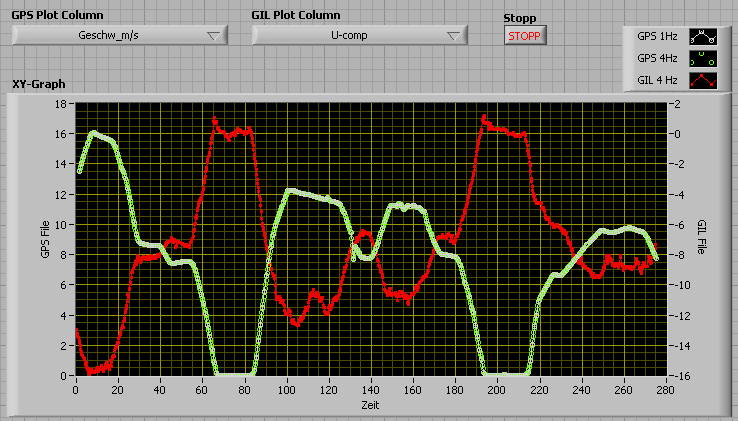 Ich sage dem Programm einfach: Gebe zum beispiel Spalte 4 aus GPSFile und Spalte 2 aus GILFile auf dem Bildschirm aus, ABER der richtigen Zeit
