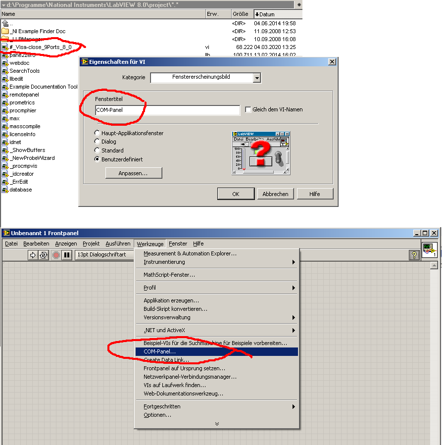 Bei mir ist es das "COM-Panel" mit dem VI-Namen #_Visa-close_9Ports_8_0.vi
