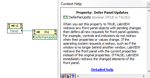 (22.07.2014 09:24 )jg schrieb:  Vielleicht hast du auch irgendwo im Programm-Code die Property-Node "Defer Panel Update" auf TRUE gesetzt?!