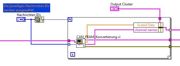 Hier sieht man wie die Frames zusammen mit der ID in das SubVi für die Konvertierung gehen.