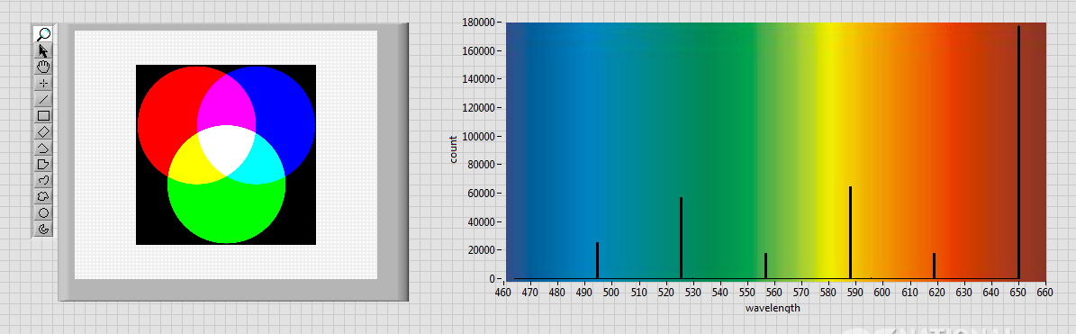 Eventuell könnte LabVIEW diese Werte für die jeweiligen RGB-Codes nehmen und so einen Graphen formen.