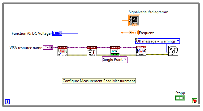 Nun will ich die Frequenz die mir der MM anzeigt in LabView numerisch (numerische Anzeige) und grafisch darstellen lassen.
