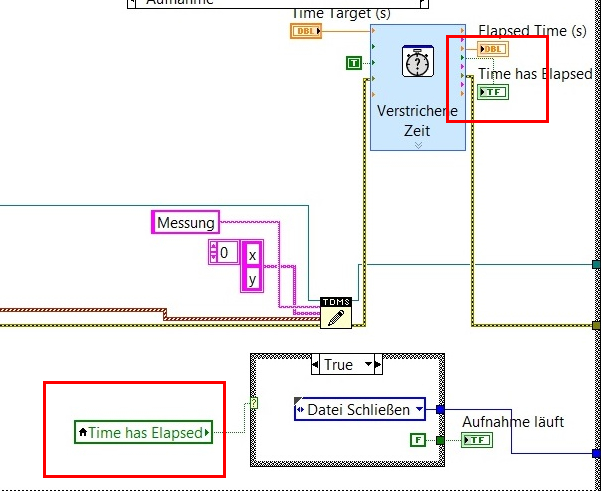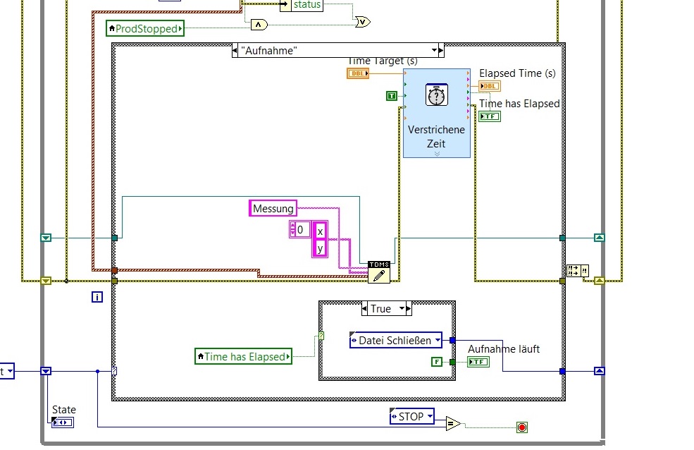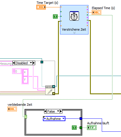 Zitat:2) Was sollen die Race-Conditions im Aufnahme-Schritt? Wozu eine eigenen Überprüfung, ob die Zeit abgelaufen ist? Das liefert dir das VI "Verstrichene Zeit":