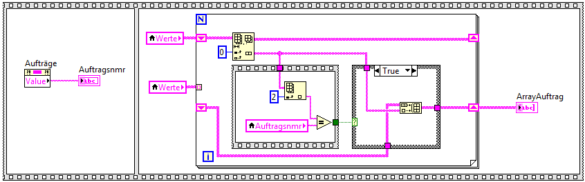 Und zwar möchte ich ein SubVI machen, welches ein 2D-Array mit unbestimmter Grösse, je nachdem was für ein Wert in der ersten Spalte einer Zeile ist, in neue 2D-Arrays trennen.
