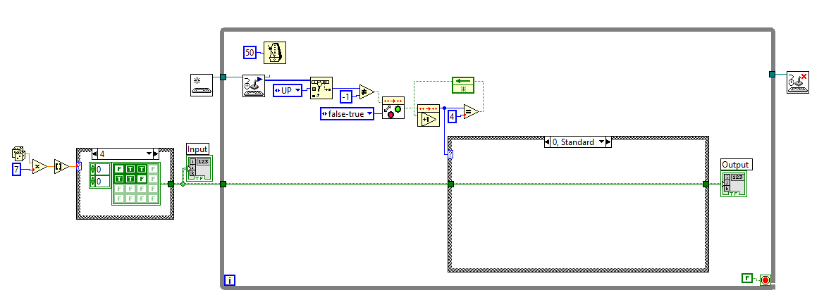 - Was soll überhaupt das Ausführen der (äußeren) FOR-Loop entweder einmal oder Null-mal? Wenn man Code anhand einer Bedingung ausführen will, nimmt man eine Case-Struktur!!! Warum sind diese Konstanten als DBL hinterlegt statt als I32?