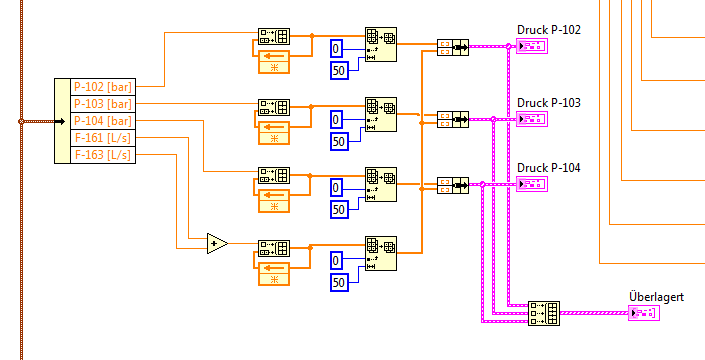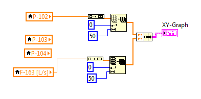 Ich bekomme Echtzeitmessungen von Volumenstrom und 3 verschiedene Drücke, die ich bereits in die richtige Maßeinheit umgerechnet habe. Jetzt möchte ich in einem Diagramm alle drei Betriebspunkte(-linien) als Graph anzeigen.