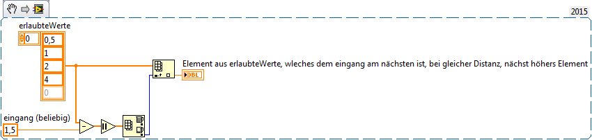 Ich habe ein double-Array mit erlaubten Werten, zum Beispiel {0,5;1;2;4} und einen double-Eingang der einen beliebigen Wert annehmen darf. Nun möchte ich aus dem Array den Wert ermitteln, dessen Differenz zum Einganswert am kleinsten ist.