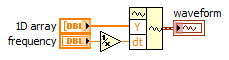 Um daraus ein Signal zu erzeugen (roter Kasten) habe ich das "Formula Waveform VI" benutzt und als Formel einfach den Amplitudenwert "a" eingegeben.