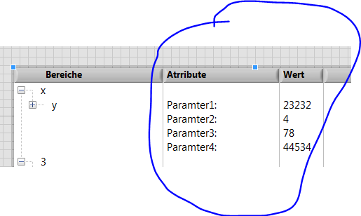 wie kann man bei der Baumstruktur in den Spalten der Attribute bestimmte Zeilen farbig markieren?