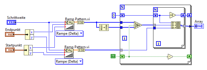 Mit dem Verknüpfungsausgang der äußeren Schleife werden die Arrays aneinander gehängt.
