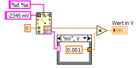 Labview ist für die Konvertierung von Werten im SI-Format bereits eingerichtet. Dafür gibt es den Fomatierungscode "%p":