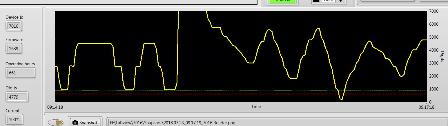 ich benutze ein Signalverlaufsdiagramm das 1x pro Sekunde neue Werte bekommt und eine Spanne von 180 Sekunden zeigt.