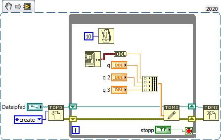 Zitat:Ich lese einige Werte über einen CAN und möchte diese Werte nun in einer .tdms abspeichern. Also mein Endergebnis sollte sein, ein Zeitstempel und x-Messkanäle