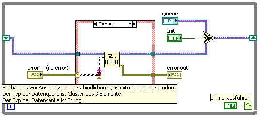 Zitat:bloß dass der Error-Cluster, der an deine "Queue-Status" Case-Struktur geht, eine Fehlermeldung enthält.