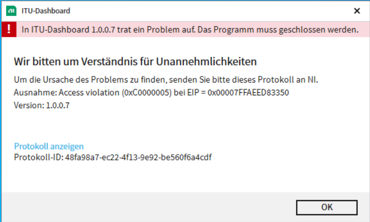 vielleicht bringt es was, zusätzliches Debugging beim Start der Exe zu aktivieren. Die folgende Beschreibung gilt zwar für LabVIEW, aber ich gehe davon aus, dass sie auch bei einer mit LabVIEW erstellen Exe funktioniert:
