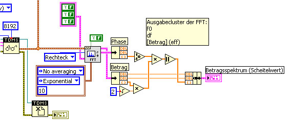 Desweiteren solltet ihr ruhig auch mal die Fensterfunktion vom FFT.vi nutzen um die Enden des Signals auf Null zu drücken. Warum das nötig ist hat Lucki im anderen Thread erklärt ...