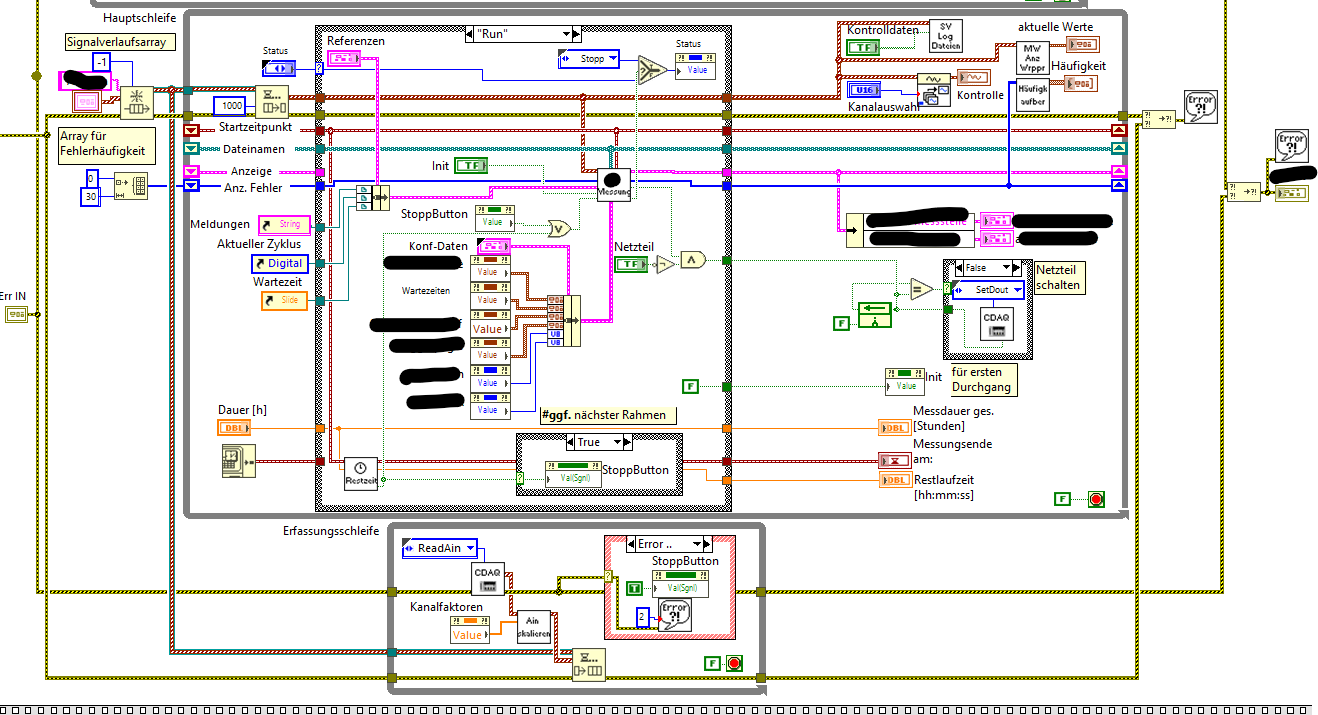 Die untere Whileschleife ist zum Auslesen der Werte da. Dort ist das VI, welches ich in der Zip mitgeschickt habe.