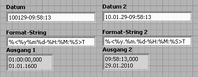 Kaum ein Mensch käme auf die Idee, in so einem Hieroglyphenstring wie 100129.09:58:13 ein Datum zu vermuten. Und weil LabVIEW diesen String auch nicht mag, nennt ihr das einen Bug? Wenn hier überhaupt etwas zu bemängeln ist, dann höchstens das Fehlen eines entsprechenden Hinweises im LV-Hilfetext. daß mit dem Formatstring nicht jeder Blödsinn machbar ist der rein syntaktisch eingentlich gehen müßte.