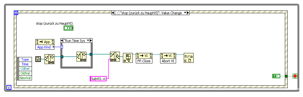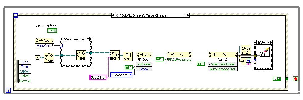 Mit dieser Methode läuft SUBVI1 ja "kontinuierlich" - und du kannst den Button, der sich in SUBVI1 befindet und zum Starten von SUBVI2 dient, auswerten.