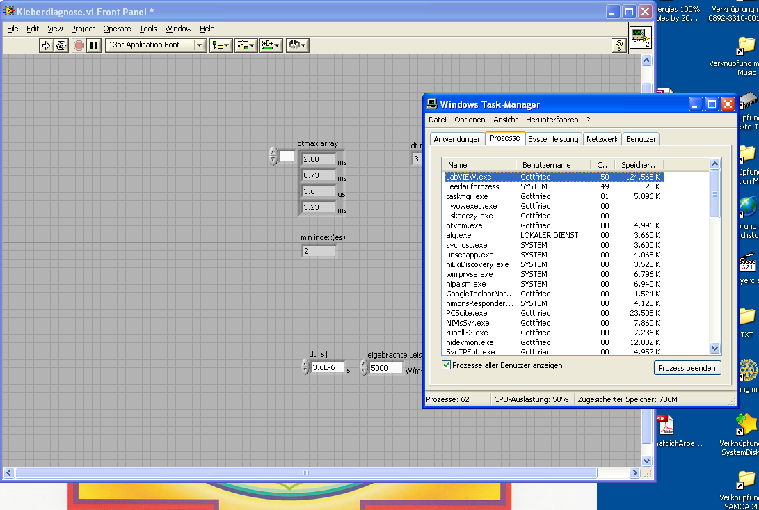 Aber selbst dann ist bei mir LabVIEW bei 100% CPU-Auslastung, zumindest, solange das Array dtmax array im Frontpanel zu sehen ist.