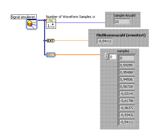 Ich dachte ein Array zu nehmen wäre ganz gut und das in einer for-Schleife zu füllen. Das Array übergibt auch die Werte nach Beenden der Schleife (die kleine Glühbirne ist ja echt genial in LabVIEW) aber die Funktion "Array-Elemente-Addieren" nimmt sich nur den ersten Wert des Arrays.